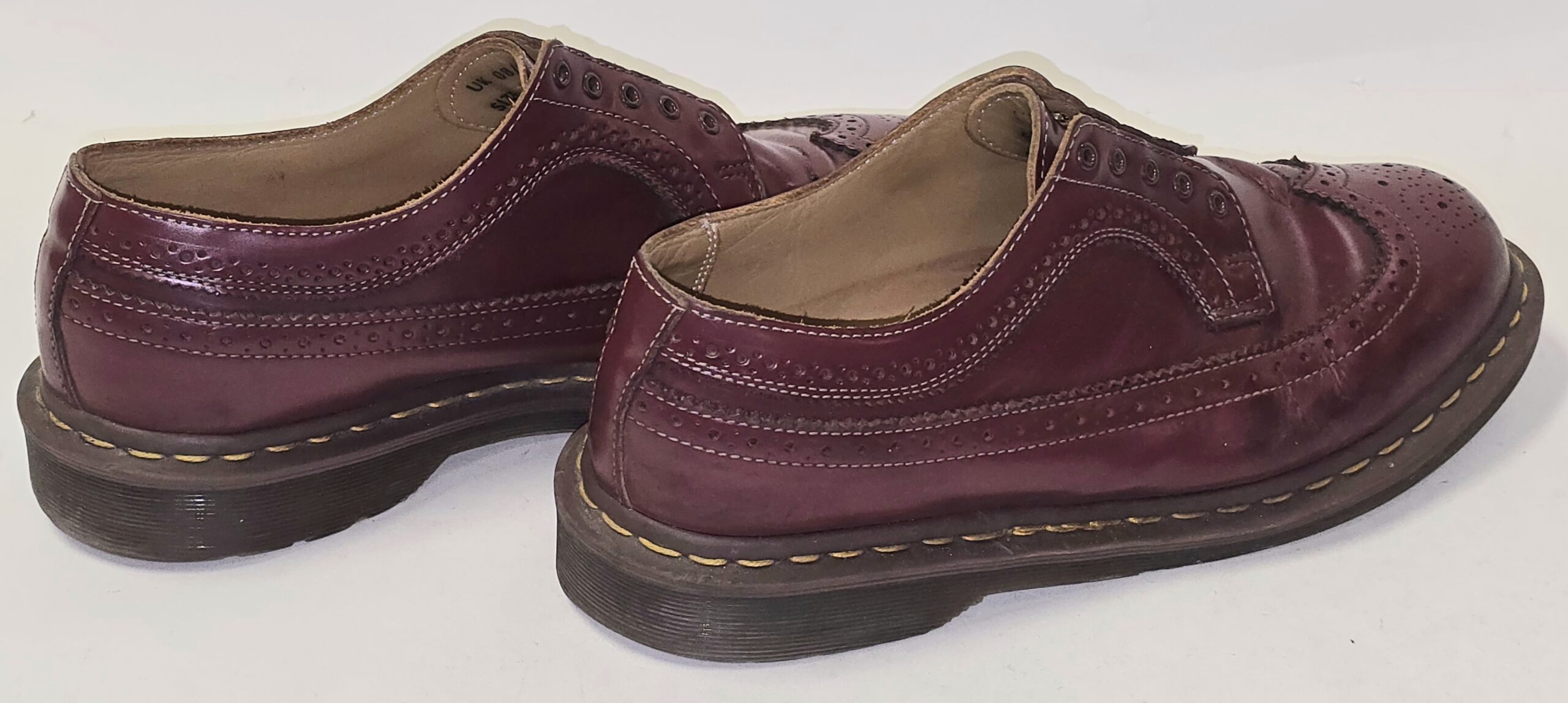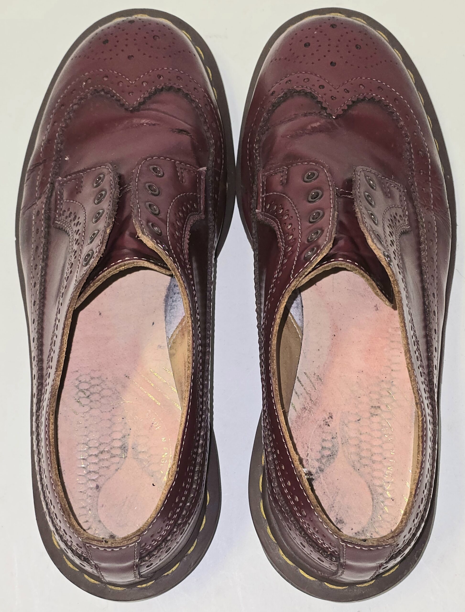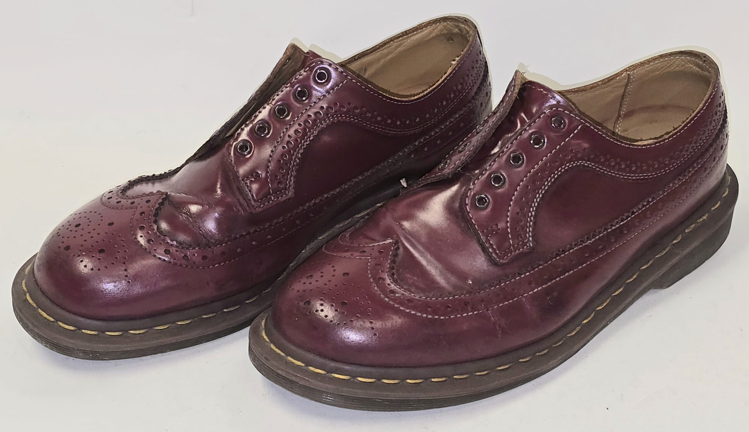 Preloved – 3898 Vintage Made in England Dr Martens brogue shoes in Cherry red, no laces.