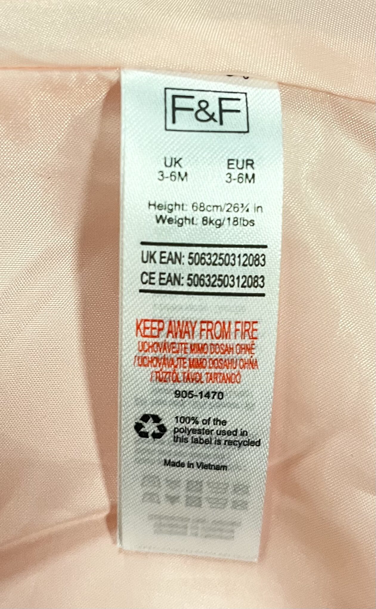 Fred & Flo, pink baby girl’s jacket, 3-6 Months.