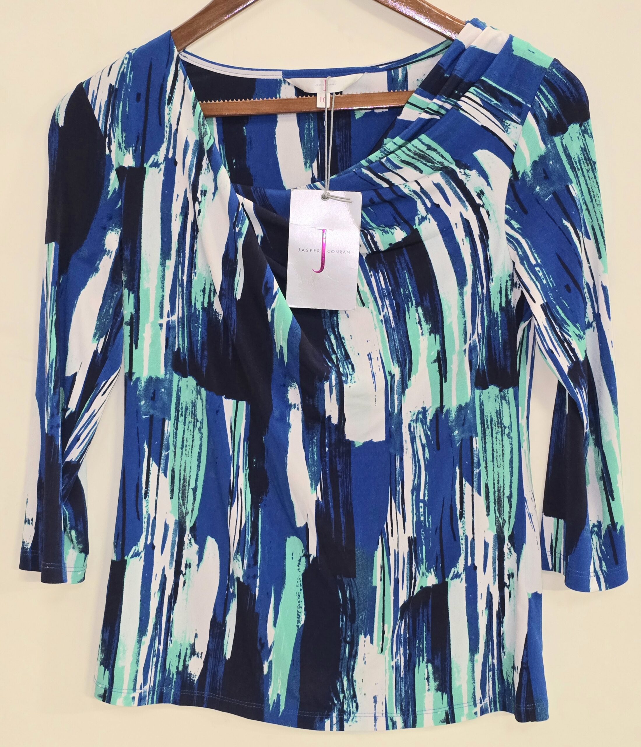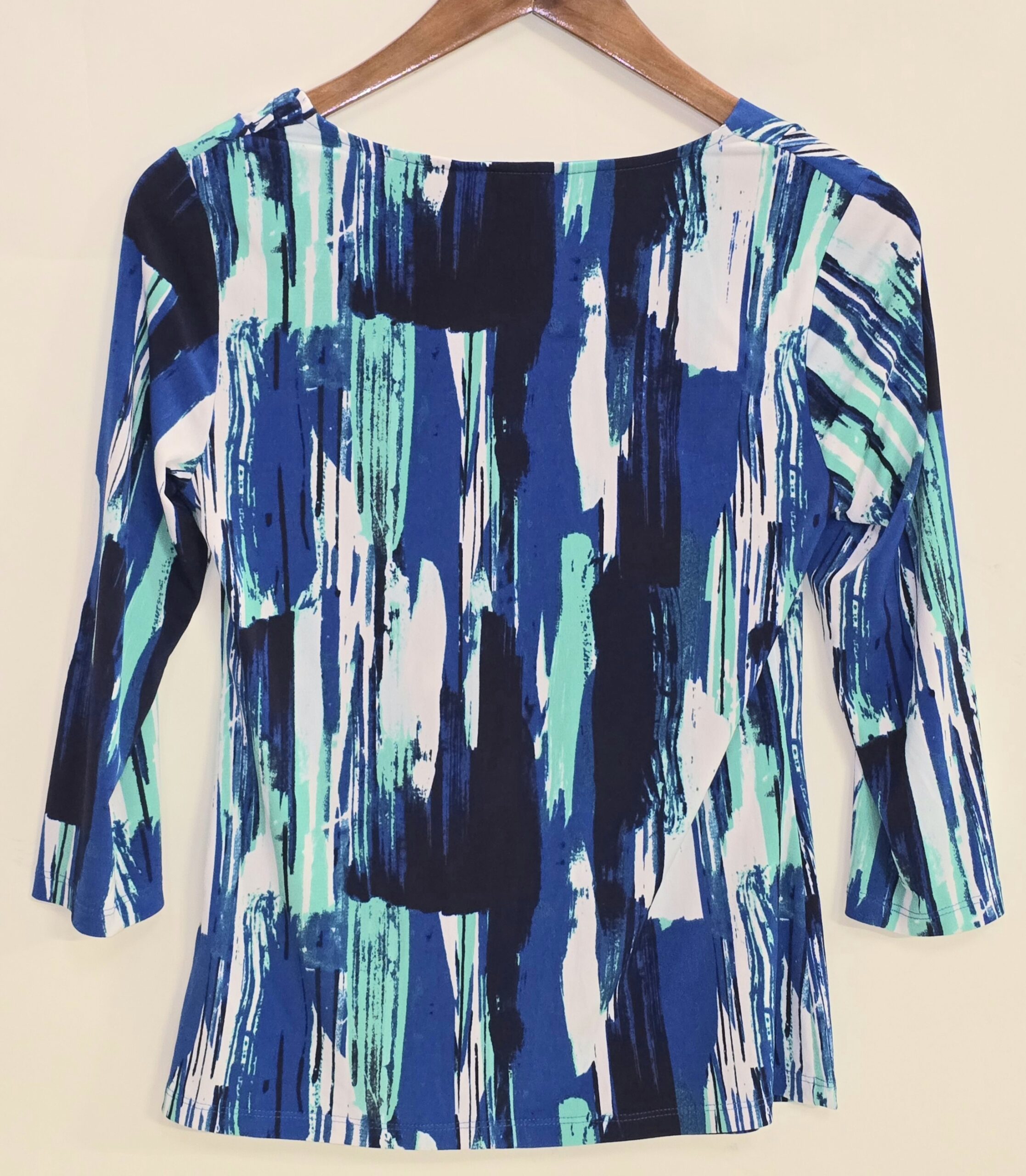 Stylish top in Blues, green and white.