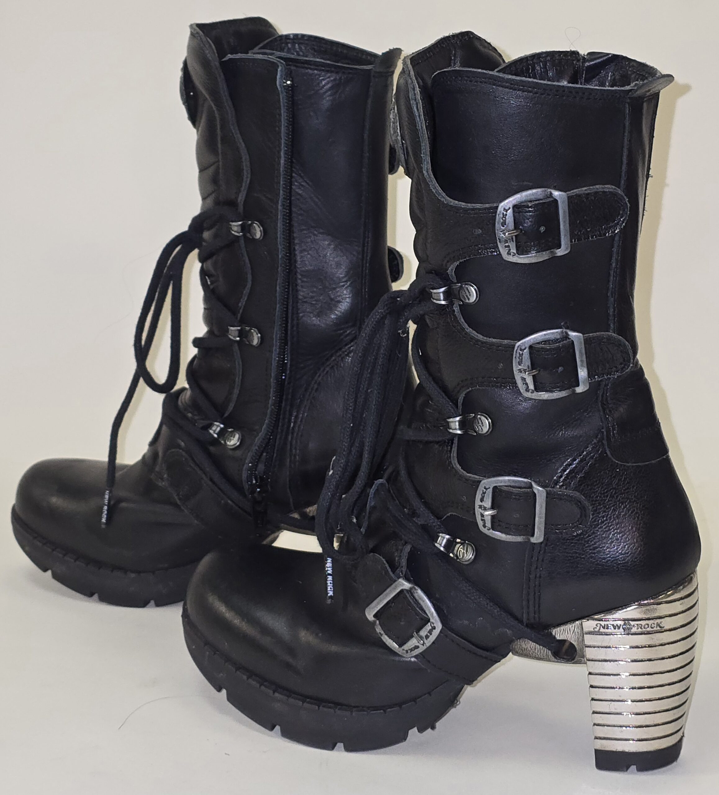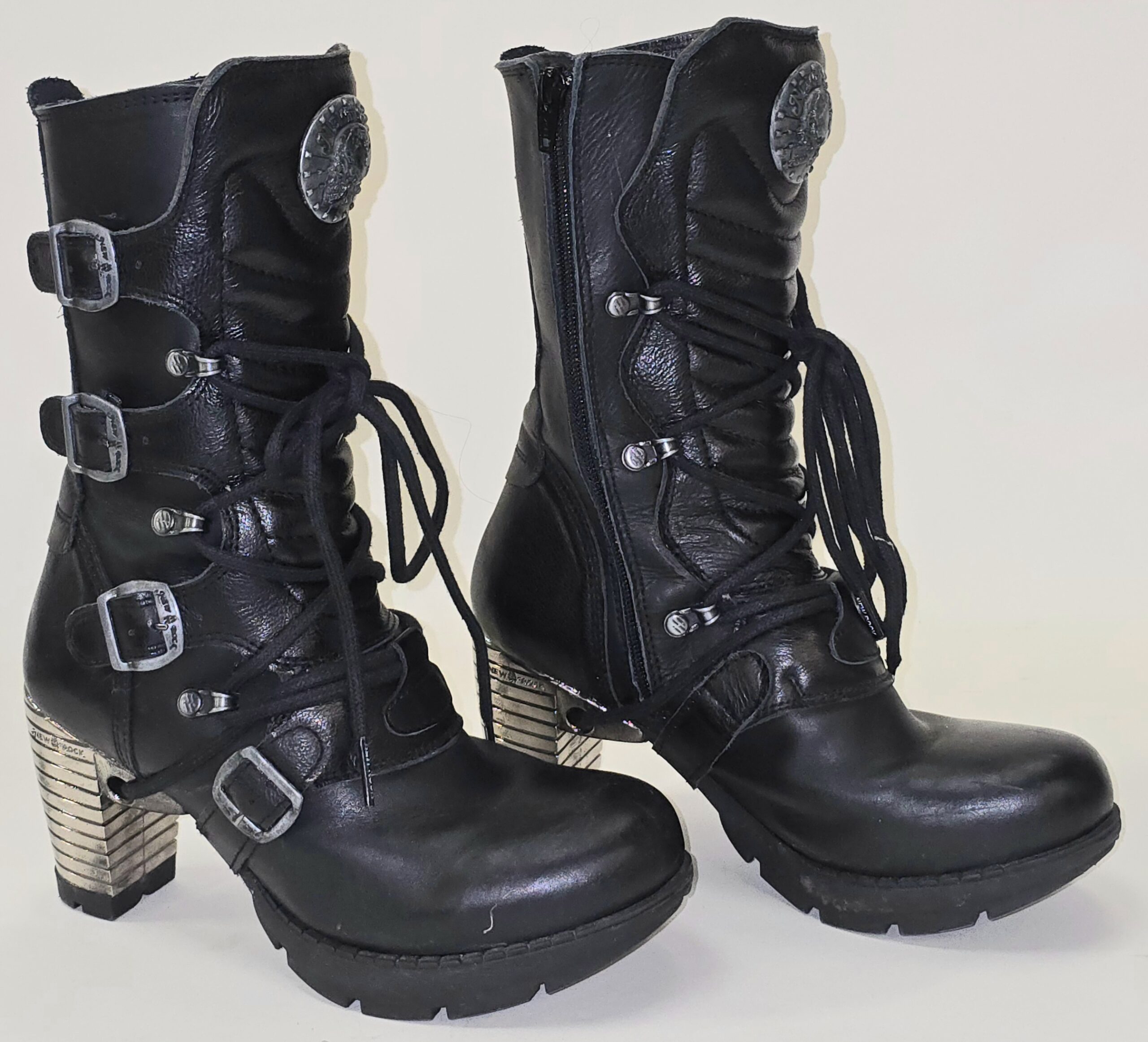 Pre-loved – Ladies black leather New Rock Boots, TR003-S1, Size UK 4