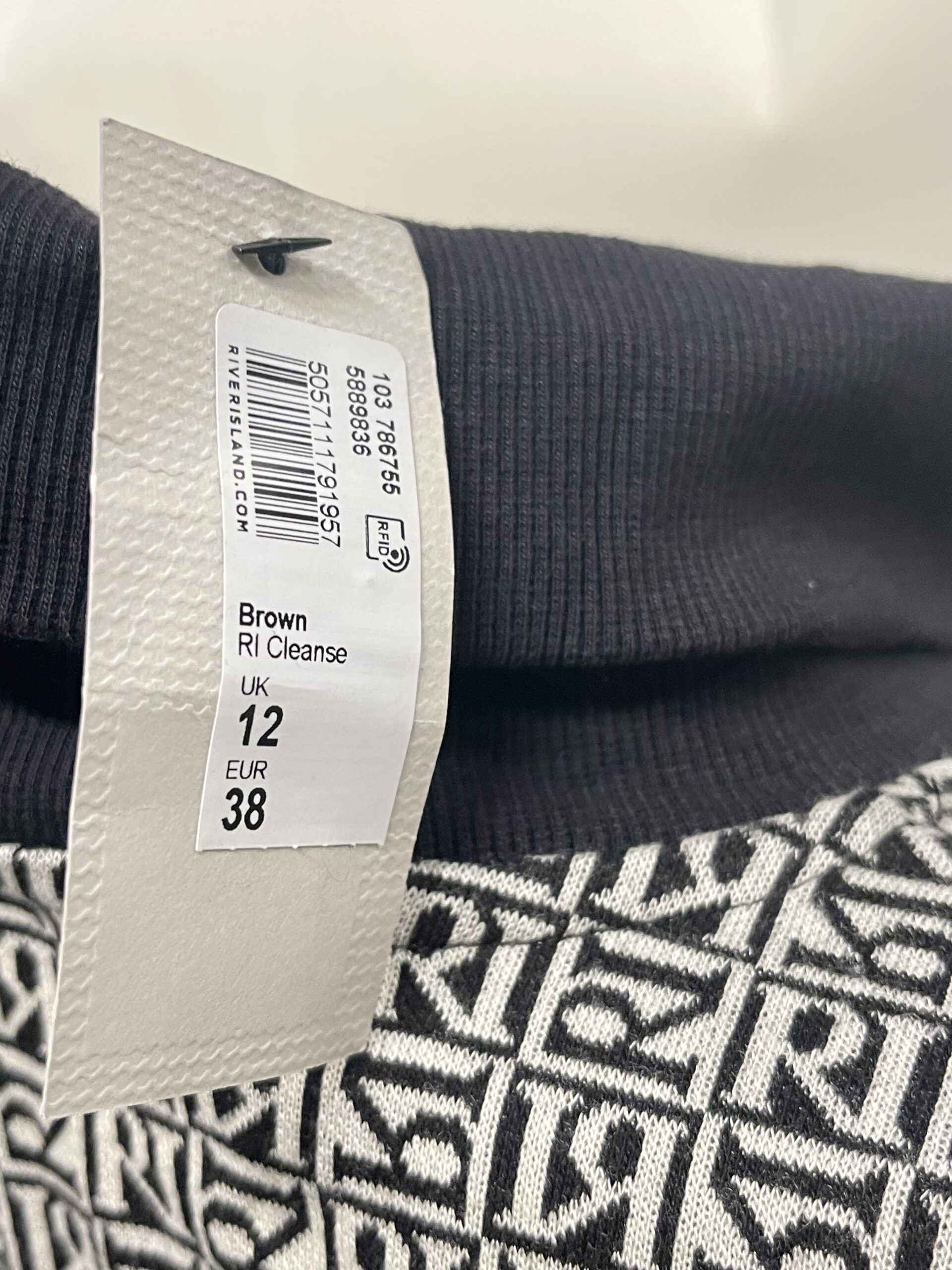 River Island Monogram high neck dress, Size 12.