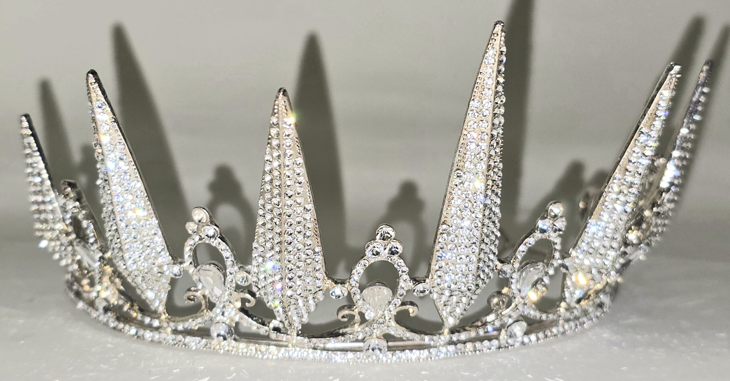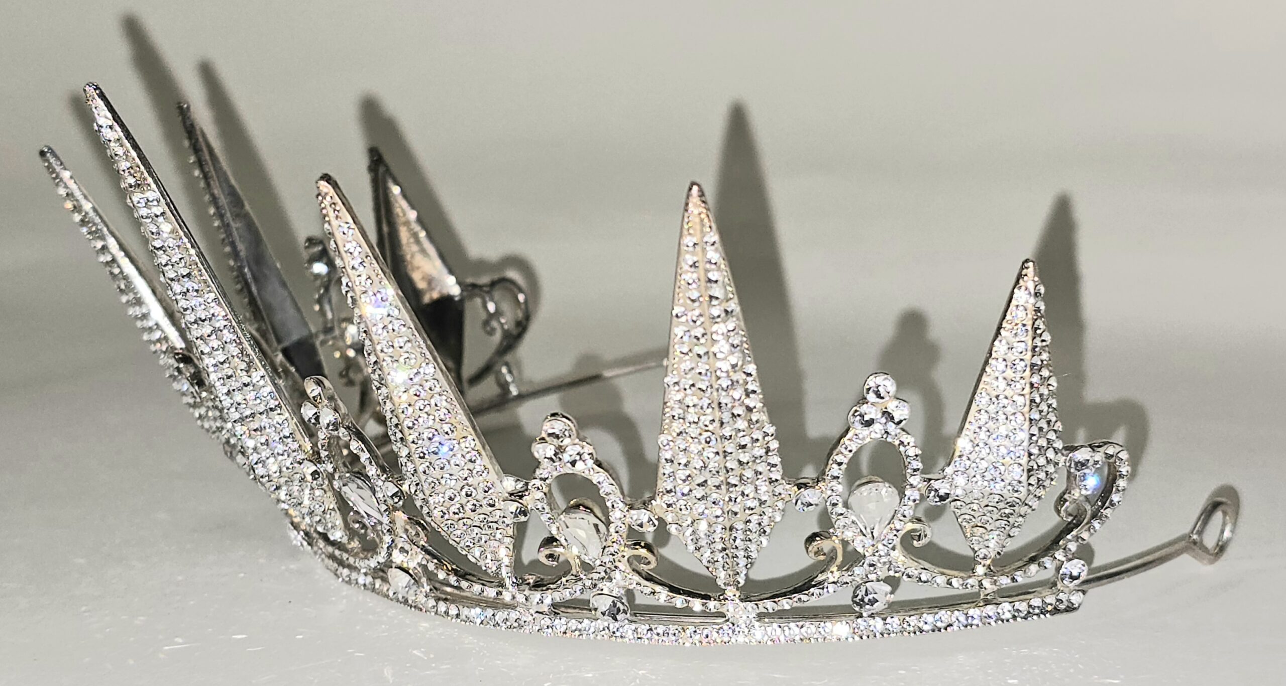 Sweet & V rhinestone tiara in box with a bag containing four spare rhinestones.